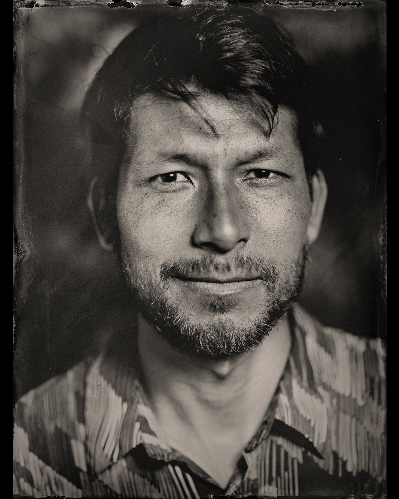 In the past decade, I have immersed myself deeply in the practice of wet plate collodion, a fascinating photographic process. Throughout this journey, I have traveled to artistic residencies, portrait sessions, productions for grants, and collaborations with various institutions and museums. I've set up temporary studios in diverse contexts, privileged to capture thousands of people on metal plates.