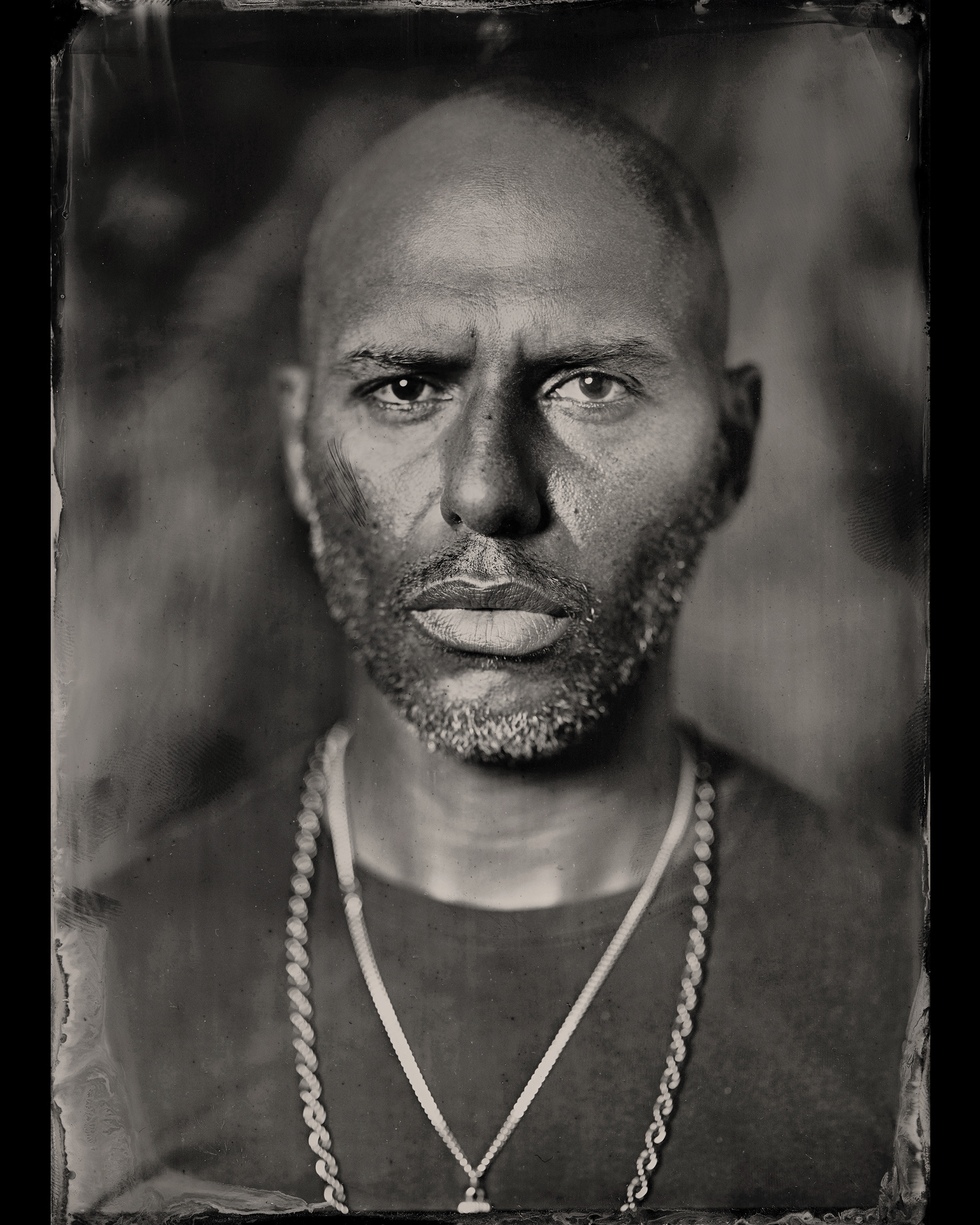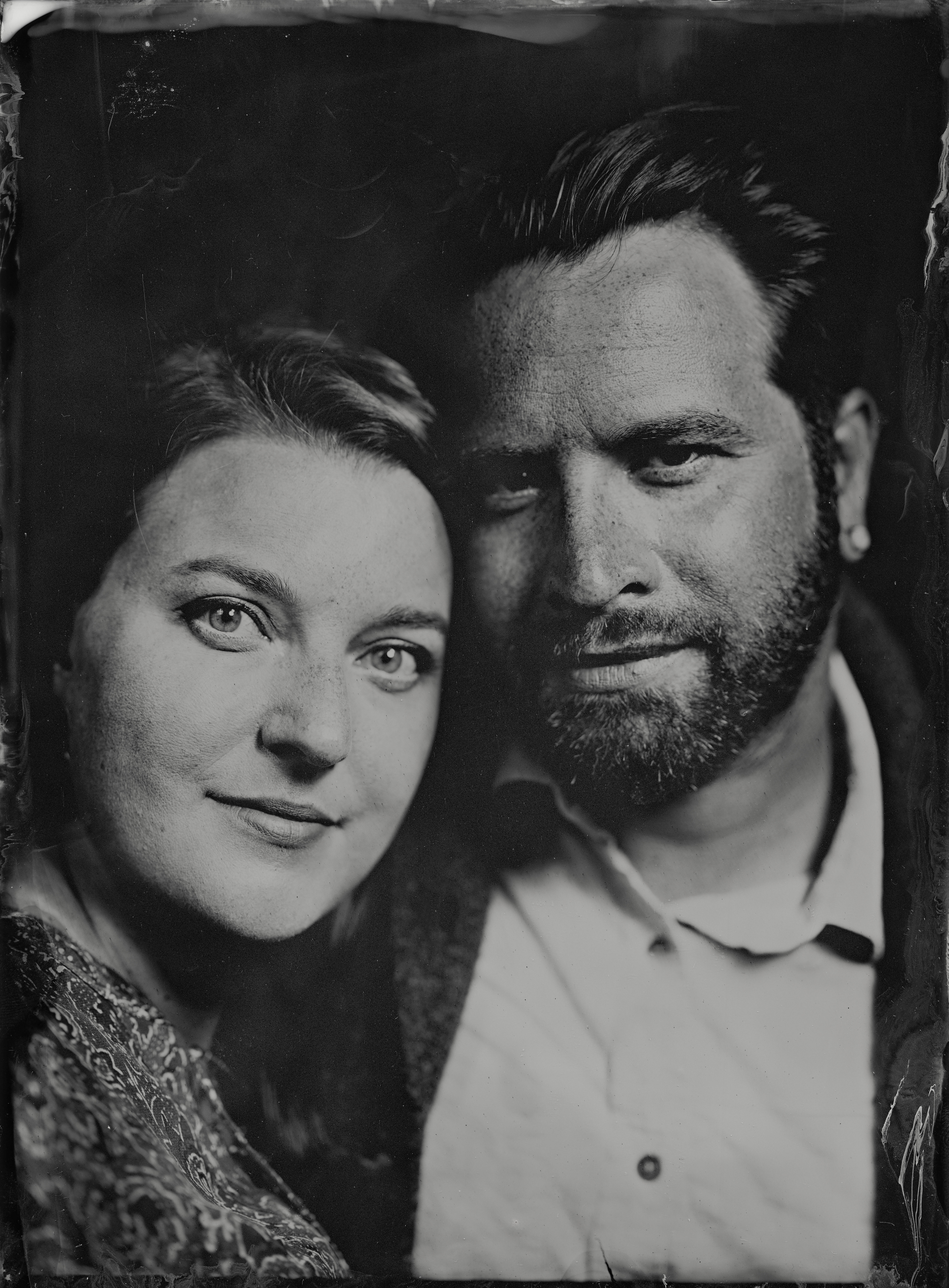 The intrinsic complicity in committing to a process that doesn't unfold as instantly and post-controllably as contemporary ones elicits remarkably intense expressions in the subjects. They are exposed without artifice, immortalized viscerally on a metal plate.
